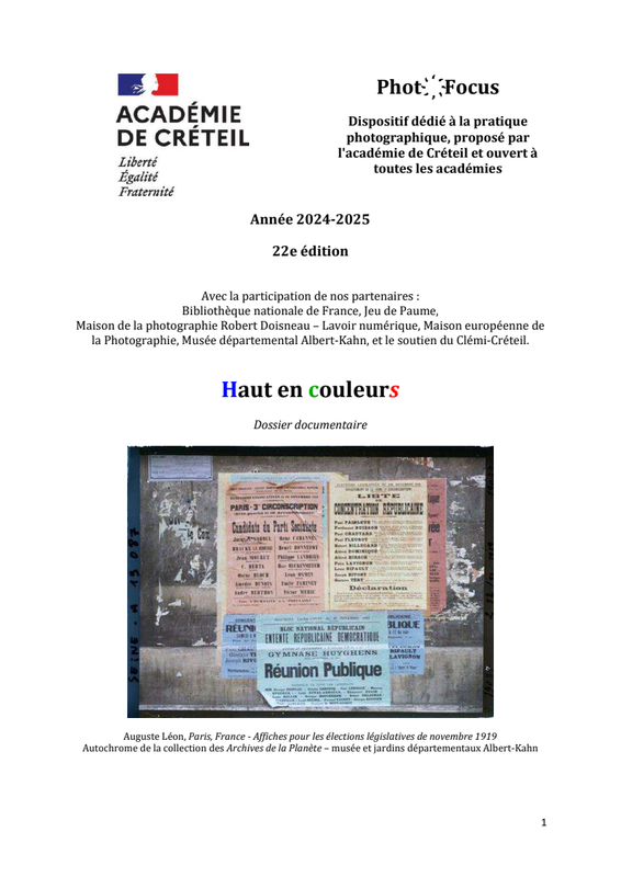- un document d'accompagnement synthétique explicitant la démarche pédagogique et présentant les images sélectionnées